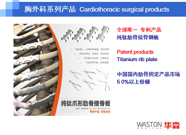 2009年:華森產(chǎn)品已經(jīng)覆蓋整個(gè)中國(guó)市場(chǎng),建立起了一支由七大區(qū)域服務(wù)中心和兩百多家經(jīng)銷商組成的銷售服務(wù)網(wǎng)絡(luò);自有品牌WASTON骨科產(chǎn)品和吻合器產(chǎn)品已經(jīng)進(jìn)入30多個(gè)國(guó)家和地區(qū),特別是WASTON吻合器已經(jīng)進(jìn)入歐洲十多個(gè)發(fā)達(dá)國(guó)家;在OEM市場(chǎng),華森已與包括全球前五位的獨(dú)立脊柱產(chǎn)品企業(yè)在內(nèi)的三十多家企業(yè)建立了合作生產(chǎn)關(guān)系;與海歸博士團(tuán)隊(duì)合作成立的常州華森生物科技有限公司正式成立;華森科技創(chuàng)新中心,即華森“三家聯(lián)動(dòng) 科技創(chuàng)新”合作平臺(tái)正式成立;