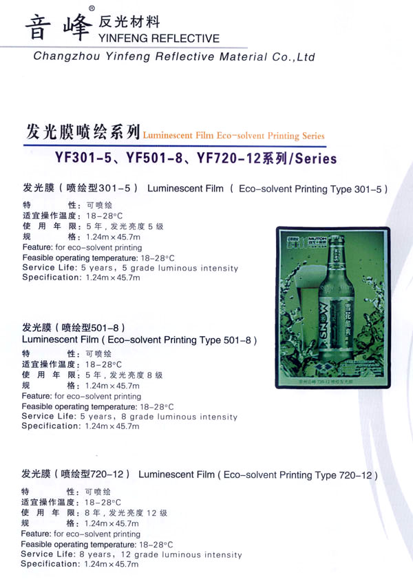 音峰集團是一個多種經營的綜合性高科技股份公司,從事反光材料、交通安全設施、絲網印刷、揚聲器、紡織等產品的研制開發(fā)、生產銷售。公司自創(chuàng)立以來,堅持走科技發(fā)展的道路,以滿足客戶需求為公司宗旨,取得了令人矚目的經濟效益和社會效益,使公司規(guī)模不斷擴大。 音峰反光材料有限公司是音峰集團下的一個新銳的子公司,主要從事系列反光材料及發(fā)光膜的研制和開發(fā)。公司擁有國內最先進的生活殘設備,最專業(yè)的研制、開發(fā)人員,公司還投入了大量的資金,年產值達1.5億。 公司主生產:廣告級反光膜、工程級反光膜、車牌級反光膜、高強級反光膜、廣告級反光雙色條、發(fā)光膜、噴繪反光膜、晶彩格、電信電力反光膜,鍍鋁膜等等..........根據(jù)國家指令法規(guī):反光材料的領域,如公路標志、標牌、標線、礦山、鐵路等......... 反光膜廣泛應用于各種廣告標志牌,公路鐵路的導向牌、指示牌、地名牌、車牌,道路交通標志,物業(yè)小區(qū)標志,臨時施工標志,廣告宣傳、安全防護、高等級公路的各種警示標語,標識牌等。 公司堅持以生產力標準衡量企業(yè)效益和員工業(yè)績,堅持“以人為本,提倡知人、容人、用人、培養(yǎng)人,使企業(yè)具有極強的凝聚力,在激勵的市場競爭中保持旺盛的生命力!笨萍急WC品質,服務完善產品“是我們永遠不變的信念。 隨著世界的發(fā)展,企業(yè)經營進入了全球化時代,本著這一共識,企業(yè)憑借自身的技術優(yōu)勢,積極參加國際間合作與競爭,努力拓展國內與國際市場,公司愿與國內外各界朋友在更廣泛的領域攜手合作,共同發(fā)展,共創(chuàng)繁榮。