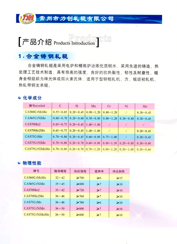 常州市力創(chuàng)軋輥有限公司(原名常州市力創(chuàng)軋廠, 創(chuàng)建于2000年),本公司專業(yè)生產(chǎn)鑄鋼軋輥、鑄鐵軋輥及鑄鋼堆焊的服務(wù),生產(chǎn)經(jīng)驗(yàn)豐富,技術(shù)力量強(qiáng)大,鑄造能力雄厚。 公司主導(dǎo)產(chǎn)品各類優(yōu)質(zhì)軋輥是集冶煉、鑄造、熱處理及機(jī)加工為一體的高科技含量產(chǎn)品,其生產(chǎn)工藝裝備先進(jìn),檢測設(shè)備完善,經(jīng)過技術(shù)中心的研發(fā),建成整體鑄鐵鑄鋼軋輥,離心復(fù)合鑄鐵軋輥等優(yōu)質(zhì)軋輥生產(chǎn)線,生產(chǎn)多系列多材質(zhì)多規(guī)格的軋輥及輥環(huán),產(chǎn)品暢銷80多家國內(nèi)鋼鐵企業(yè),各項(xiàng)技術(shù)指標(biāo)均滿足客戶使用要求,得到用戶充分肯定,具有強(qiáng)勁的競爭實(shí)力。 我公司連續(xù)多年被評(píng)為明星企業(yè),文明單位,重合同守信用企業(yè),并通過ISO9001:2008最新質(zhì)量體系認(rèn)證。 我公司堅(jiān)持以“質(zhì)量至上,誠信為本”為宗旨,熱忱歡迎新老客戶洽談合作,竭誠為廣大客戶提供優(yōu)質(zhì)產(chǎn)品和良好服務(wù)。