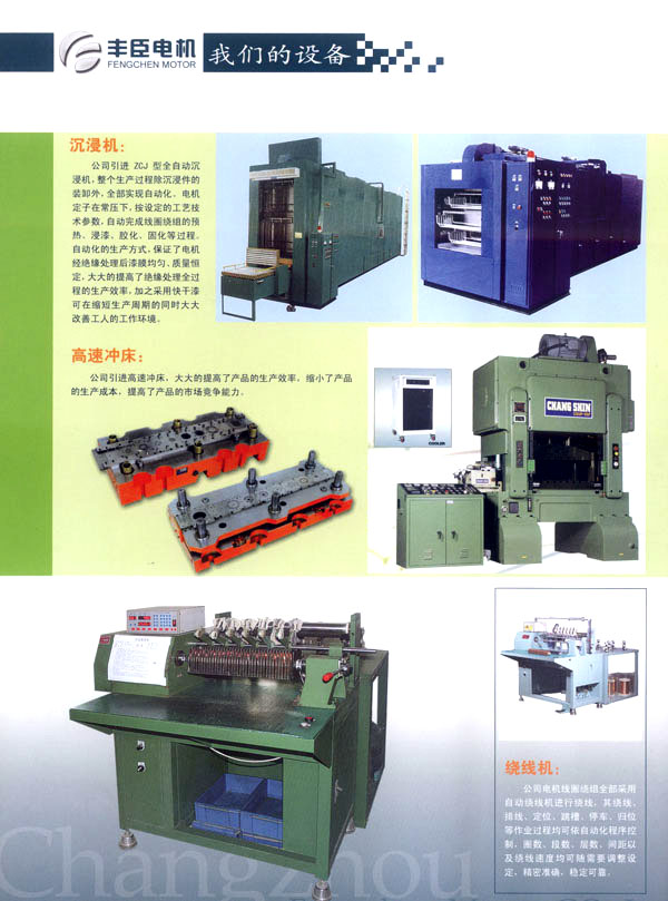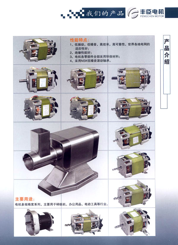 常州市豐臣電機(jī)有限公司成立于2001年6月,是一家在投資1000萬(wàn)元基礎(chǔ)上創(chuàng)辦的股份合作制企業(yè)。 公司坐落于常州市遙觀鎮(zhèn)劍湖開(kāi)發(fā)區(qū),西臨京杭大運(yùn)河旁,南依312國(guó)道,北靠常錫路,交通便利,具有得天獨(dú)厚的地理優(yōu)勢(shì)。 豐臣電機(jī)公司專(zhuān)業(yè)生產(chǎn)從YY70-YY145系列感應(yīng)電動(dòng)機(jī),年生產(chǎn)能力達(dá)150萬(wàn)臺(tái),年生產(chǎn)總值近1億元人民幣。公司現(xiàn)擁有員工300余人,其中高級(jí)工程師、高級(jí)技師、高級(jí)管理人員及其它專(zhuān)業(yè)技術(shù)人員40余人;擁有先進(jìn)的生產(chǎn)能力、企業(yè)管理能力、技術(shù)開(kāi)發(fā)能力、質(zhì)量管理經(jīng)驗(yàn);具有各類(lèi)專(zhuān)業(yè)生產(chǎn)設(shè)備25臺(tái)(套),專(zhuān)業(yè)檢測(cè)設(shè)備器具50余套。 本公司在發(fā)揮傳統(tǒng)技術(shù)優(yōu)勢(shì)的基礎(chǔ)上,積極開(kāi)展多方位的技術(shù)合作,協(xié)同常州市津盛辦公用品有限公司開(kāi)發(fā)感應(yīng)電機(jī)產(chǎn)品市場(chǎng)。公司引進(jìn)國(guó)際上先進(jìn)的全自動(dòng)浸漆生產(chǎn)線,產(chǎn)品生產(chǎn)自動(dòng)化程度高,產(chǎn)品質(zhì)量穩(wěn)定可靠。電機(jī)表面有噴漆、涂塑等防腐處理,產(chǎn)品具美觀、耐腐蝕、安裝簡(jiǎn)便等優(yōu)點(diǎn),廣泛應(yīng)用于辦公設(shè)備用品、電動(dòng)工具等行業(yè)。 本公司產(chǎn)品已通過(guò)UL認(rèn)證,并于2002年通過(guò)ISO9001:2000國(guó)際質(zhì)量管理體系認(rèn)證, 2005我公司年被評(píng)為江蘇省市場(chǎng)重質(zhì)量守誠(chéng)信優(yōu)秀單位。 本公司以顧客滿(mǎn)意為宗旨,以科技創(chuàng)新、精品服務(wù)為經(jīng)營(yíng)理念,注重產(chǎn)品質(zhì)量的持續(xù)改進(jìn)。我們的質(zhì)量方針是:“以顧客要求為己任,我們不斷追求技術(shù)領(lǐng)先、優(yōu)質(zhì)高效,滿(mǎn)意服務(wù)”,我公司真誠(chéng)與各新老顧客合作,攜手共進(jìn)。