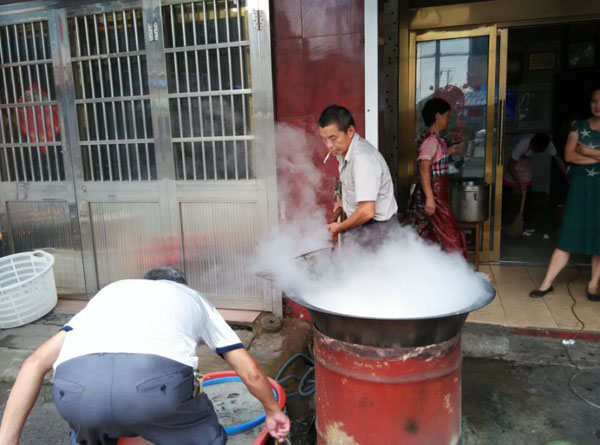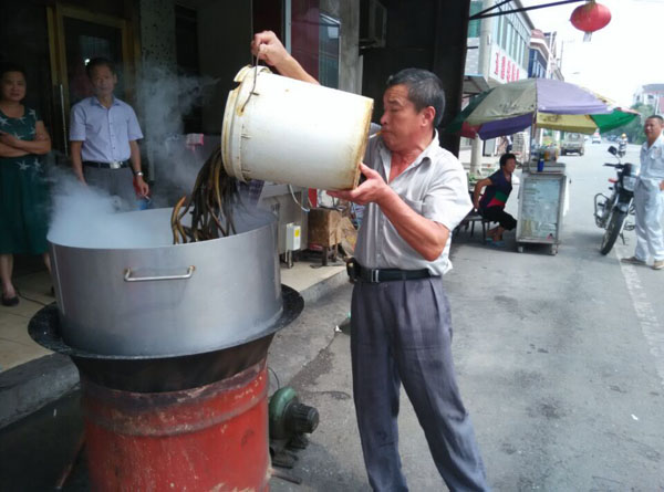 常州新北區(qū)孟河公陽(yáng)小吃店從事鱔絲面23年,經(jīng)營(yíng)面積100平方米,黃鱔全是野生,面湯采用高湯制作(鱔魚(yú)湯),下面的時(shí)候先用開(kāi)水把黃鱔燙熟,然后用竹刀批下二條黃鱔肉,除去骨頭肚腸,切成段后入油鍋里炸酥,再用白湯烹制成為面澆頭。而面湯是用鱔魚(yú)骨頭、豬骨等用大鍋猛火煮上三、四個(gè)鐘頭,成為一鍋濃濃的白湯,再進(jìn)行調(diào)味,吃到嘴里全身舒坦。