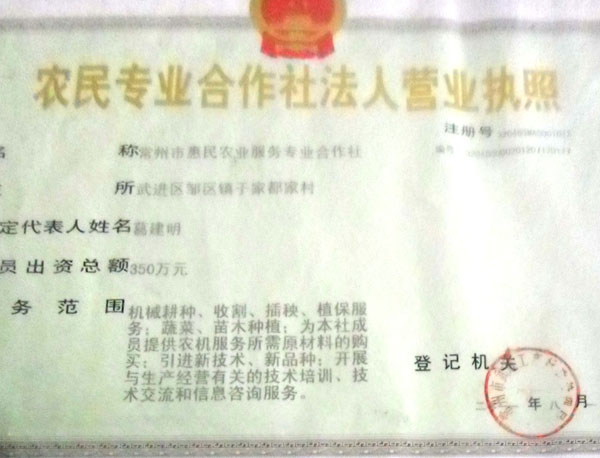 常州市惠民農(nóng)業(yè)服務專業(yè)合作社主要從事機械耕種、收割、插秧、植保服務;蔬菜、苗木種植;為本社成員提供農(nóng)機服務所需原材料的購買;引進新技術(shù)、新品種;開展與生產(chǎn)經(jīng)營有關(guān)的技術(shù)培訓、技術(shù)交流和信息咨詢服務。