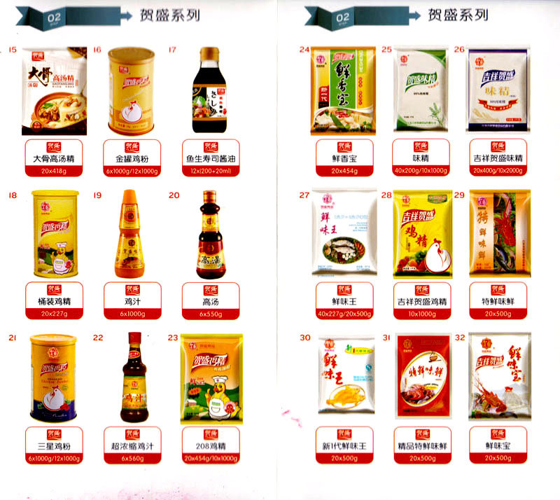 公司占地面積23500平方米,花園式工廠、廠房面積18500平方米,員工330余名,其中擁有中、高級(jí)職稱管理和技術(shù)人員58名,生產(chǎn)場(chǎng)地均按食品和藥品GMP要求設(shè)計(jì)、全封閉車(chē)間、中央空調(diào)系統(tǒng)、閉路電視監(jiān)控系統(tǒng)。已建成成三條雞精,雞粉生產(chǎn)線。一條雞汁生產(chǎn)線。一條鮮味汁生產(chǎn)線。一條醬汁精膏類生產(chǎn)線,規(guī)劃年生產(chǎn)能力達(dá)30000噸。 "賀盛"品牌取自《詩(shī)·大雅·下武》中"受天之祜、 四方來(lái)賀";《易經(jīng)》中"富有謂之大業(yè),日新之謂盛德",賀盛企業(yè)師法源遠(yuǎn)流長(zhǎng)中華飲食文化,融匯中西健康美食調(diào)味。相繼研發(fā)生產(chǎn)出高品質(zhì)的"賀盛牌"味精、雞精、雞粉、雞汁、湯王、鮑魚(yú)醬王、鮮味汁調(diào)味素和各種風(fēng)味熱反應(yīng)精膏等系列產(chǎn)品。二十年來(lái)"賀盛"產(chǎn)品質(zhì)量獲得廚藝界專業(yè)人士和消費(fèi)者的一致好評(píng)和高度認(rèn)可。 賀盛企業(yè)和產(chǎn)品相繼榮獲1995年"首界中國(guó)國(guó)際食品博覽會(huì)金獎(jiǎng)",2001年企業(yè)通過(guò)ISO-9001國(guó)際質(zhì)量體系認(rèn)證,2003年江蘇省"計(jì)量保證確認(rèn)單位",2004年獲得自營(yíng)出口權(quán),2005年賀盛雞精榮獲"江蘇名牌產(chǎn)品",2006年賀盛商標(biāo)被評(píng)為"江蘇省著名商標(biāo)",2007年通過(guò)HACCP認(rèn)證,全部產(chǎn)品均通過(guò)QS食品安全認(rèn)證,并積極努力爭(zhēng)創(chuàng)中國(guó)名牌,中國(guó)馳名商標(biāo)。 公司銷(xiāo)售網(wǎng)點(diǎn)建設(shè)發(fā)展迅速,相繼組建上海、南京、河南、海南、新疆全資分公司;辦事處、經(jīng)銷(xiāo)商覆蓋全國(guó),并出口日本、香港及東南亞地區(qū)。二十年來(lái),在公司總裁周?chē)?guó)林先生帶領(lǐng)下,全體同仁秉承"厚德載物、自強(qiáng)不息"宗旨,發(fā)揚(yáng)"以人為本、科技創(chuàng)新、自我加壓、爭(zhēng)創(chuàng)一流"的企求精神;致力于傳承中華飲食文化,融化西方美食精粹,不斷的研發(fā)、創(chuàng)新,奉獻(xiàn)更多更好的調(diào)味料,讓生活更有滋味。