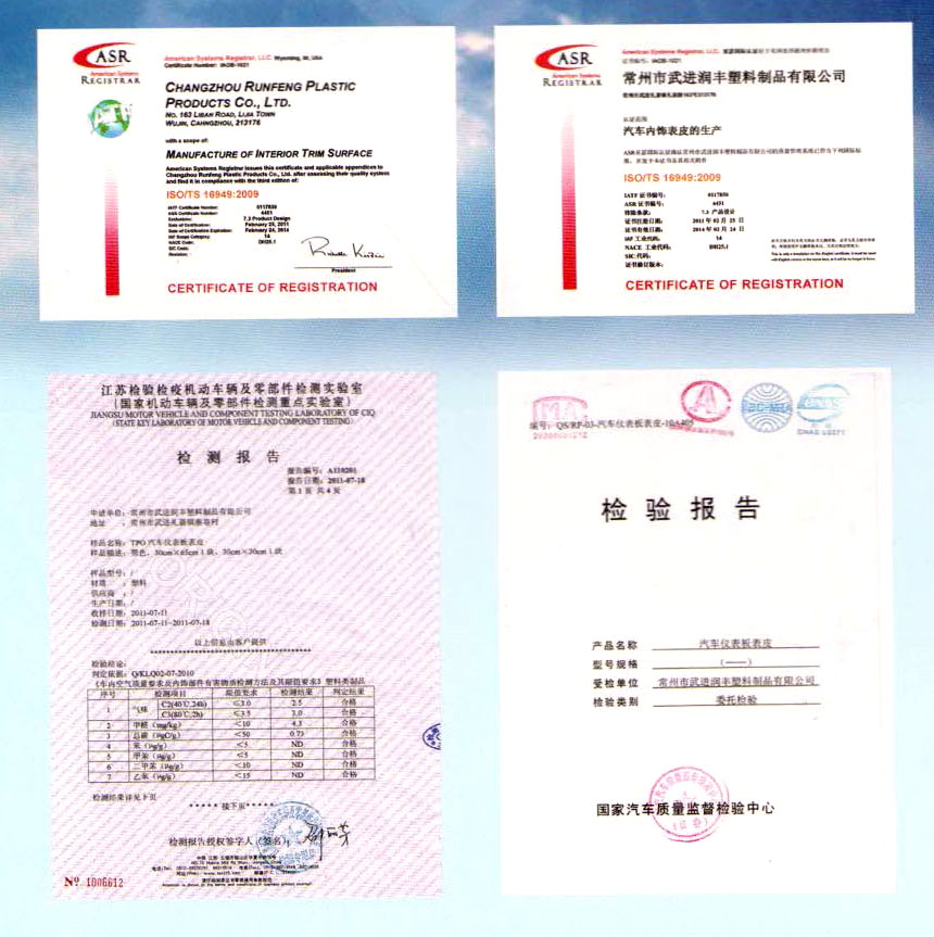 常州市武進(jìn)潤(rùn)豐塑料制品有限公司地處風(fēng)景美麗經(jīng)濟(jì)發(fā)達(dá)的長(zhǎng)江三角洲常州市東郊禮嘉鎮(zhèn),公司占地面積約8000平方米,且地理位置優(yōu)越,是中外客商常涉之地。 本公司專業(yè)生產(chǎn)汽車儀板軟化表皮、PVC門護(hù)板表皮、PVC復(fù)合制品、壓延薄膜制品,(塑料制品除醫(yī)用塑料制品),車輛零部件,機(jī)械電器零部件,電子元件,沖壓件制造,加工無(wú)妨制品,玻纖氈(GFP板),麻氈板等。本公司的產(chǎn)品在國(guó)內(nèi)一線乘用車上廣泛使用。產(chǎn)品通過國(guó)家汽車質(zhì)量監(jiān)督檢驗(yàn)中心檢測(cè),并取得了各種證書,如亞瑟國(guó)際認(rèn)證;ISO/TS1694:2009等。 本公司技術(shù)力量雄厚,生產(chǎn)設(shè)備先進(jìn)。多年來,建立了較完善的質(zhì)量管理體系,以先進(jìn)的檢測(cè)技術(shù),優(yōu)質(zhì)的服務(wù)態(tài)度,向客戶提供最優(yōu)秀的產(chǎn)品,在同行中享有良好的聲譽(yù)。 歡迎新老客戶來公司指導(dǎo),洽談,合作。