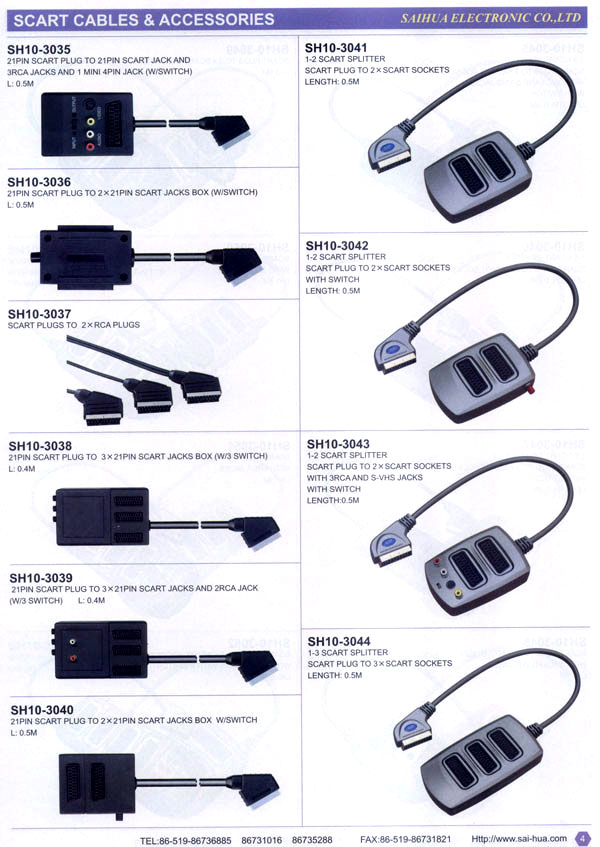 常州賽華漢誠電子有限公司系專業(yè)設(shè)計和出口電子元器件的制造商,公司成立于1992年,座落于常州市武進區(qū)禮嘉鎮(zhèn)坂上工業(yè)園區(qū)。主要生產(chǎn)音視頻接插件,SCART線,電源線及電話連接件。公司擁有精良的生產(chǎn)設(shè)備及完善的檢測儀器,并獲得ISO9001-2000質(zhì)量認(rèn)證,F(xiàn)公司員工200余人,其中工程技術(shù)人員15人。產(chǎn)品遠銷歐美,東南亞等國家,我們秉承“一流的品質(zhì),一流的服務(wù)”。歡迎海內(nèi)外客戶來電來函。
