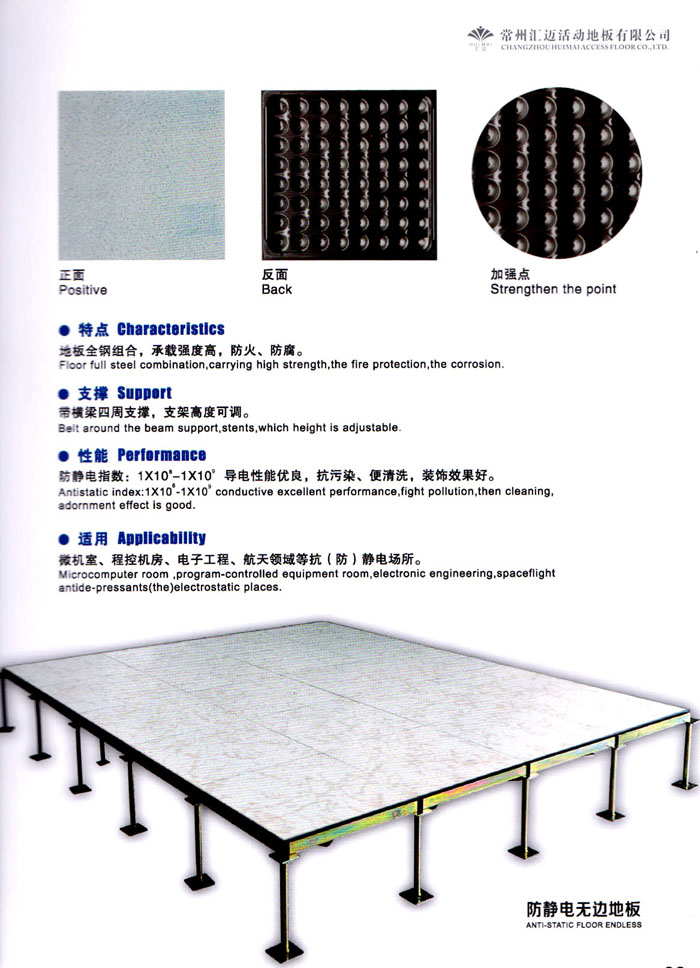 常州匯邁活動地板有限公司地處鄉(xiāng)鎮(zhèn)工業(yè)發(fā)達的江蘇省常州市。北靠滬寧高速公路、東臨上海、交通便利。多年來,公司以其硬朗的產(chǎn)品質(zhì)量.良好的商業(yè)信譽,嚴(yán)格的企業(yè)管理,迅速發(fā)展成為國內(nèi)生產(chǎn)全鋼活動地板的知名企業(yè)。 本公司致力于高新技術(shù)產(chǎn)品開發(fā)、生產(chǎn)、研究的綜合性企業(yè):主要生產(chǎn)和經(jīng)營防靜電網(wǎng)絡(luò)地板系列.主要包括:陶瓷防靜電活動地板、無邊地板、硫酸鈣防靜電地板、OA網(wǎng)絡(luò)活動地板等。公司按照GB6650—86與IS09001 :2000系列質(zhì)量標(biāo)準(zhǔn)化管理和標(biāo)準(zhǔn)化生產(chǎn),以市場為導(dǎo)向.不斷對現(xiàn)有產(chǎn)品進行優(yōu)化、更新,對生產(chǎn)線進行技術(shù)改造,力求減低成本,提高效辜。努力在市場競爭中占據(jù)優(yōu)勢。本公司為中國信息產(chǎn)業(yè)部認(rèn)證企業(yè).質(zhì)量由國家信息產(chǎn)業(yè)部防靜電產(chǎn)品質(zhì)量監(jiān)督檢測中心認(rèn)可。 公司大力發(fā)展國內(nèi)殛海外銷售業(yè)務(wù),公司采用各種有效的營銷手段,向客戶展示了公司及產(chǎn)品的良好形象,多次中標(biāo)國內(nèi)重點裝飾工程 同時。公司積極融入全球經(jīng)濟發(fā)展,積極拓展海外業(yè)務(wù)。 匯邁地板將一如既往,開發(fā)和制造一流的產(chǎn)品,吸引和培養(yǎng)一流的人才,擁有和完善一流的服務(wù),建立和發(fā)展一流的形象,迎接新時代!