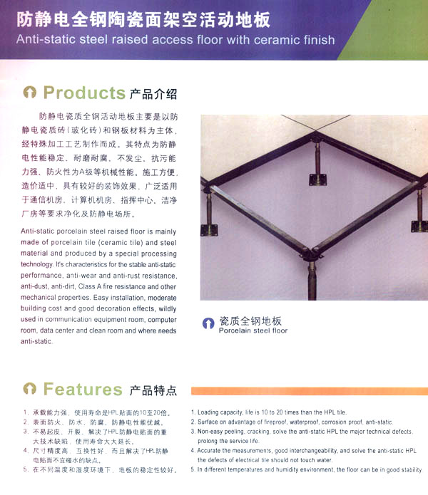 常州天馳活動(dòng)地板有限公司始創(chuàng)于2010年,原身是常州市武進(jìn)區(qū)橫林天馳機(jī)房地板廠,地處橫林工業(yè)園區(qū),交通便捷。 公司主要生產(chǎn)和銷(xiāo)售各種機(jī)房地板,自創(chuàng)立以來(lái),以品質(zhì)第一,信譽(yù)第一,服務(wù)第一的理念堅(jiān)持做全國(guó)最優(yōu)質(zhì)量。 防靜電高架活動(dòng)地板是計(jì)算機(jī)行業(yè)發(fā)展起來(lái)的新型鋪地材料,隔離了潮氣,靜電灰塵。最重要的是解決了綜合布線(xiàn)問(wèn)題,無(wú)需預(yù)埋管線(xiàn),可隨時(shí)拆卸,搬移,保證了資訊設(shè)備完整的優(yōu)點(diǎn),適應(yīng)了智能化樓宇中信息自動(dòng)化技術(shù)對(duì)所處環(huán)境的特定要求,避免了廣大客戶(hù)的雙重投資,使現(xiàn)代化辦公程度更加高效,辦公場(chǎng)所更加舒適。 公司專(zhuān)業(yè)生產(chǎn)“天馳”系列活動(dòng)地板,符合國(guó)家安全要求,種類(lèi)完備多樣,其中防靜電瓷質(zhì)高架通路地板除具有普通瓷質(zhì)的裝飾和實(shí)用性外,其耐磨,防水,防火功能優(yōu)于其他同類(lèi)產(chǎn)品,深受客戶(hù)歡迎。 公司大力發(fā)展國(guó)內(nèi)外銷(xiāo)售業(yè)務(wù),多次中標(biāo)國(guó)內(nèi)重點(diǎn)裝飾工程,例:湖南電視臺(tái),寧波縣變電站,鞍山市120急救指揮中心等。 公司將一如既往開(kāi)發(fā)和制造一流的產(chǎn)品,愿與廣大有識(shí)之士合作發(fā)展,共創(chuàng)美好未來(lái)!
