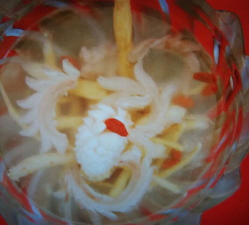 張萬成羊莊一家綜合性的公司,下設(shè)酒店,羊產(chǎn)品加工廠,屠宰廠,山羊養(yǎng)殖場。 酒店位于常州西夏墅浦河村,酒店羊宴規(guī)模占地30畝,酒店主要經(jīng)營特色全羊宴。 一個祖?zhèn)鞯臍⒀虼髴,傳到張萬成,已是第六代了。張家的羊肉,素來以肉質(zhì)鮮美著稱,張萬成羊莊的主人張建龍是第六代傳人,張家的羊肉素來以肉質(zhì)鮮美著稱,從常州新北區(qū)沿黃河西路往機(jī)場方向直行至羅溪右轉(zhuǎn),穿過滬寧高速高架橋后不遠(yuǎn)處左拐沿翠屏湖路直走便能看到張萬成羊莊,酒店上下共有三層,2000多平方米經(jīng)營面積,能同時接待近30桌客人的規(guī)模。有自己的羊圈和屠宰場,每天殺20多只,菜式近100道。光是原料,就從原來羊身上的幾個主要部位,增加到除了羊牙齒以外的一只整羊全部可以入菜。烹制方式,更是在本土單一的燒、炒、煮基礎(chǔ)上,借鑒了東北、廣東、四川等地的烹羊特色,增加了蒸、涮、烤、煎、炸等多種方式。 注重原汁原味的冷菜 白切羊肉:精選羊頸部的活肉精制而成,肥瘦適中,絲毫沒有一般羊肉的膻味,沾少許張萬成羊莊秘制的醬料,口感非常好。 美味羊舌:張家的羊舌感覺是用特殊的醬料腌制過的,咸中略有甜味,口感鮮嫩卻肥而不膩,味道很香。 除了白切羊肉和羊舌以外還有許多冷菜品種,如羊肚、羊心、羊耳朵等。。 火候控制精準(zhǔn)的炒菜 炒羊肝:地道的農(nóng)家風(fēng)味,與大蒜葉同炒,蒜香濃郁,羊肝鮮嫩,這羊肝可是火候菜,羊肝鮮嫩與否不但取決于廚師對火候的掌握,還在于上桌放置時間的長短,所以羊肝上桌后要盡快食用,看羊肝是否鮮嫩,只需用筷子挑起并輕輕抖動,有彈性者為佳。 美味羊?qū)殻阂跃曼S、鮑味菇爆炒的羊?qū),說是滋補(bǔ)壯陽的一道金貴菜,配料講究的燒菜系列 宮廷燴羊肚:較為金貴的菜品,配菜貴于主料,是以名貴的素鮑和新鮮的筍絲與羊肚同煮,口感濃郁,營養(yǎng)豐富。 海參白燒羊肉:將取自7個月大羔羊身上的帶皮腿肉與海參一同煨煮,菜肴美容滋補(bǔ),兩種鮮味互相補(bǔ)益達(dá)到完美交融狀態(tài),口感甚佳。 魚羊鮮:新鮮的青魚配上羊肉,既有本地羊肉的肥嫩,又有魚肉的鮮香,鮮!鮮!古代人造字就是有道理!”店里可以根據(jù)客人的需要配以魚回魚、鯰魚、鱖魚等。 特色的羊宴點(diǎn)心 羊肉餛飩:羊莊老板自創(chuàng)的羊宴點(diǎn)心,看似普通的油燜跑蛋卻另有乾坤,將蛋掀開便能看見藏于其中的羊肉菜餡餛飩,菜和肉都是自家新鮮的原料,很好吃。 手工搟面:不知道是因?yàn)槊媸钦嬲檬止{制還是因?yàn)榧尤肓缩r味十足的羊湯,總之味道非常好,面勁道,湯也鮮美! 張萬成羊莊的羊湯也是遠(yuǎn)近聞名,因?yàn)槭亲鎮(zhèn)鞯氖炙嚕龀鰜淼难驕恍炔浑,香醇不膩,味道十分鮮美,加入粉絲或者面條更是難得的美味。
