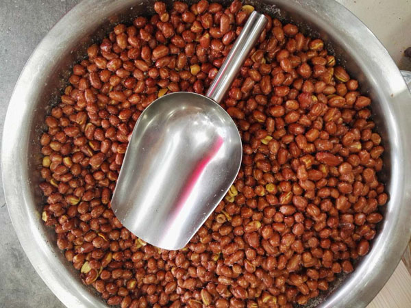湖塘花東街上的“石頭炒貨店”是20多年的老字號了。上個世紀(jì)90年代,二十郎當(dāng)歲的“石頭”一一石愛軍從徐州來到武進(jìn),就在這條街上擺了個炒貨攤!皫灼椒矫椎男〉財偅吷霞軅大鐵鍋,炒出的瓜子、花生、蠶豆,鋪在竹篾上篩過、冷卻后就可以賣了。”石愛軍回憶,街坊鄰里冒著冬日的嚴(yán)寒,擠在地攤前嘗著剛出鍋的瓜子的場景,還歷歷在目。20多年過去了,鄰居們都成了最熟悉的親人,從年輕姑娘到抱著孫子的老人,大家還是最愛吃石頭炒的瓜子。而炒貨店的店面也擴(kuò)大了,并且在湖塘另開了多家分店。 生意最好的還是花東街上的老店。不大的店面,被一袋袋瓜子、花生、蠶豆、核桃堆得滿滿的,空氣里也滿滿都是堅果的香氣。超大瓜子唇齒留香,去皮瓜子鮮香入昧,南瓜子皮薄肉厚,還有開心果、手剝松子、小油果、核桃、碧根果、小黃豆,以及炒米糕、蛋卷、麻松條、紫薯干、地瓜干、山芋片、鍋巴、芝麻糖、山楂、麻花、葡萄干….這么多美昧都是老板親手制作。愛吃點(diǎn)什么,就用一 長柄勺鏟點(diǎn)兒什么,最質(zhì)樸簡單的包裝袋里,裝著的是屬于這條老街居民記憶里的味道,穿過幾十年的時光,仍然鮮活生動地銘刻在每一個人的里。 “少東家”石榮沖就是在這個老店、這條老街長大的。他說目前自己炒瓜子的技藝還沒到火候,還在跟著父親學(xué)習(xí)的階段!碧暨x原料、炒制工序,每一步都有學(xué)問在里頭!蹦玫陜(nèi)的銷售冠軍“內(nèi)蒙大瓜子”來說,這種來自內(nèi)蒙、經(jīng)過充足日照的葵花子每顆長度近2厘米,個頭特別大,也十分飽滿。拈一顆大瓜子,就連嗑起來的聲音也分外清脆。外皮很容易與內(nèi)仁剝離,碩大的瓜子仁口感十分香脆,與別家作料用得很足、吃起來特別鮮咸的瓜子不同,這種大瓜子更注重烘托原昧,淡淡的咸昧在舌尖掠過,剩余的都是屬于瓜子的天然香甜。