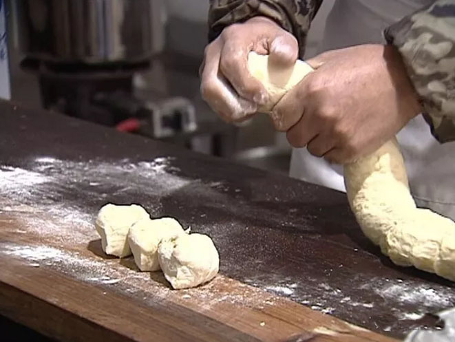 武進(jìn)區(qū)前黃韓記點(diǎn)心坊從事各式點(diǎn)心制作已有兩代人,特色是雞蛋油條,特色大麻糕,小籠包及各種饅頭,大麻糕又酥又松。 天光大亮,前黃寨橋農(nóng)貿(mào)市場已是人來人往,熱鬧非凡。 靠近市場的一排店面房,聞著隱約飄出的芝麻香,記者找到了坐落其中的韓記點(diǎn)心坊。 油條在鍋內(nèi)滋滋翻滾、各種口味的麻糕在柜臺里依次擺開、包子隱藏在散著熱氣的蒸鍋內(nèi)……沉寂一個(gè)晚上的胃,頓時(shí)有些不安于寂寞。 韓記大油條: 飯店、麻辣燙店點(diǎn)名要它 60斤面粉,大約400根油條,這是韓記點(diǎn)心坊每天要賣掉的量。 將預(yù)先調(diào)制好的面團(tuán)鋪開,切成均勻的長條,每兩條上下疊好,用小竹板中間一壓、拎起兩頭一拉,放進(jìn)油鍋,滿鍋的油就開始沸騰起來。 老板韓效慶做起油條來一氣呵成,他的油條會用到低筋、中筋、高筋三種面粉,根據(jù)季節(jié)不同,配比也不同,再加雞蛋、泡打粉發(fā)面,炸好后吃起來特別香脆。 “附近市場飯店、麻辣燙店用的油條都是我這里的,有些食客點(diǎn)名要吃我們店里的油條!表n效慶自豪地介紹說,他做點(diǎn)心的手藝是從父親那里學(xué)來的。在父親手下學(xué)了7年后,他先后前往常州迎桂饅頭店、興隆園美食城、常州麻糕店等地打工,最終形成了自己的點(diǎn)心配方。 兩年前,韓效慶回到家鄉(xiāng),在農(nóng)貿(mào)市場租店面開了點(diǎn)心坊,這里也成了市場上最熱鬧的一家店鋪。 韓記大麻糕: 冷著吃也很酥脆 向外地人介紹常州地道美食,大麻糕是絕對繞不過的。一家好的麻糕店,一定要具備以下特點(diǎn):清晨排長隊(duì);麻糕被帶往外地甚至海外;死忠粉甚多。而這些特點(diǎn),韓記大麻糕都具備。 要問韓記大麻糕與其他麻糕有什么不同,韓效慶還真說出了好幾個(gè)區(qū)別。例如,很多傳統(tǒng)麻糕使用烤桶,烤桶內(nèi)用的是煤,而韓記用的是大烤箱。再比如,一些外地朋友吃到的麻糕“干乎乎、木噱噱”,“這是因?yàn)樗麄冑I到的麻糕采取了普通的發(fā)面方式,再放進(jìn)爐子或烤箱一烤,水分蒸發(fā)了,肯定硬!表n效慶經(jīng)過多次嘗試,用麥芽糖發(fā)面,麥芽糖具有保濕性,使水分不易蒸發(fā),對麻糕的保濕與品質(zhì)的維持有較好的效果,這樣做出來的麻糕即便冷了也依舊酥脆。甜味的韓記大麻糕也不使用白糖,而是采用果糖,麻糕冷后也不會結(jié)塊,保持了更好的口感。 在韓記,大麻糕做好后,表面的芝麻也不是撒上去的,而是印上去的。芝麻經(jīng)烘烤之后顆粒飽滿,呈象牙色,使大麻糕的香、脆得到充分體現(xiàn)。 韓記大肉包:糅合豆瓣醬的創(chuàng)新美味 下粉、摻水、攪拌、揉搓……棉絮狀的面粉像被施了魔法,不一會兒就變成了一個(gè)白凈光滑的面團(tuán)。 韓效慶將面團(tuán)放置在一旁,待它慢慢餳著,轉(zhuǎn)手拿出已經(jīng)拌好的餡料,“你能聞出什么味道嗎?”在確定記者猜不出后,他開始娓娓道來——豬肉都是后腿肉,餡料里不放鹽、味精,全靠豆瓣醬和糟方提味。 待面團(tuán)和餡料都準(zhǔn)備就位,只見韓效慶一手拿著切好的面團(tuán),一手握著搟面棍,飛速地邊搟邊旋轉(zhuǎn),一張薄厚適中的面皮眨眼就制作完成了。他將搟好的面皮放于左手手心,舀起一勺肉餡置于面皮中央,熟練地將面皮捏出十多道褶皺,輕輕一扭,一個(gè)肉包躍然眼前。 待包子蒸好,食客們紛紛起身,等著帶走屬于自己的那一份美味。記者也忍不住拿起一個(gè),咬上一口,咸鮮的美味、撲鼻的豆瓣香,那種特別的味道只有品嘗過的人才能體會。 食客點(diǎn)評:食客孫桂洪:我是寨橋人,住在湖塘好幾年了,可每隔一段時(shí)間,我就特別想那酥脆的油條和熱乎的肉包。驅(qū)車前往韓記點(diǎn)心坊,點(diǎn)上一碗豆腐湯,要兩樣點(diǎn)心,趁熱一股腦兒全都塞進(jìn)胃里,每次吃完都特別滿足。