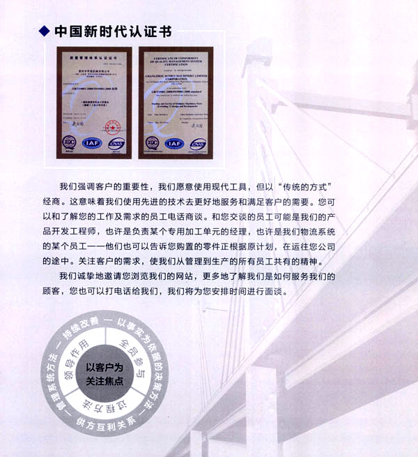 公司于2007年6月通過IS09001質量體系認證。本著信譽第一,誠實合作,嚴格管理為服務宗旨,全員參與、持續(xù)改善。提升品質、準時交貨、客戶滿意的質量方針。為客戶提供優(yōu)質的產品,周到的服務。嚴格的品質,快捷的送貨,完善的生產設備,一流的技術,使公司在同行業(yè)中占有一席之地。