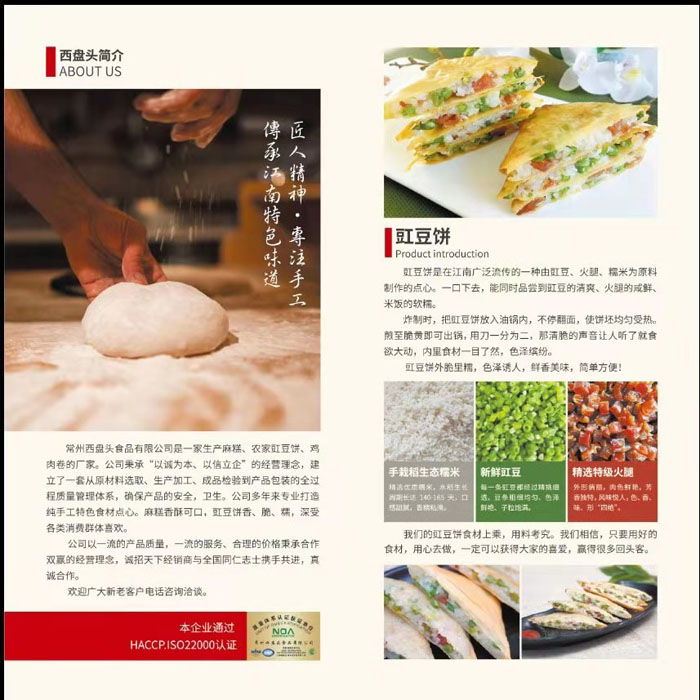 常州西盤(pán)頭食品有限公司是一家專業(yè)生產(chǎn)農(nóng)家豇豆餅的廠家。公司秉承“以誠(chéng)為本、以信立企”的經(jīng)營(yíng) 理念,建立了一套從原材料選取、生產(chǎn)加工、成品檢驗(yàn)到產(chǎn)品包裝的全過(guò)程質(zhì)量管理體系,確保產(chǎn)品的安全 ,衛(wèi)生。公司多年來(lái)專業(yè)打造純手工特色食材點(diǎn)心。豇豆餅香,脆、糯的口感深受各類群體喜歡。 公司以一流的產(chǎn)品質(zhì)量、一流的服務(wù)、合理的價(jià)格秉承合作雙贏的經(jīng)營(yíng)理念,誠(chéng)招天下經(jīng)銷商與全國(guó) 同仁志士攜手共進(jìn),真誠(chéng)合作。歡迎廣大新老客戶電話咨詢洽談。