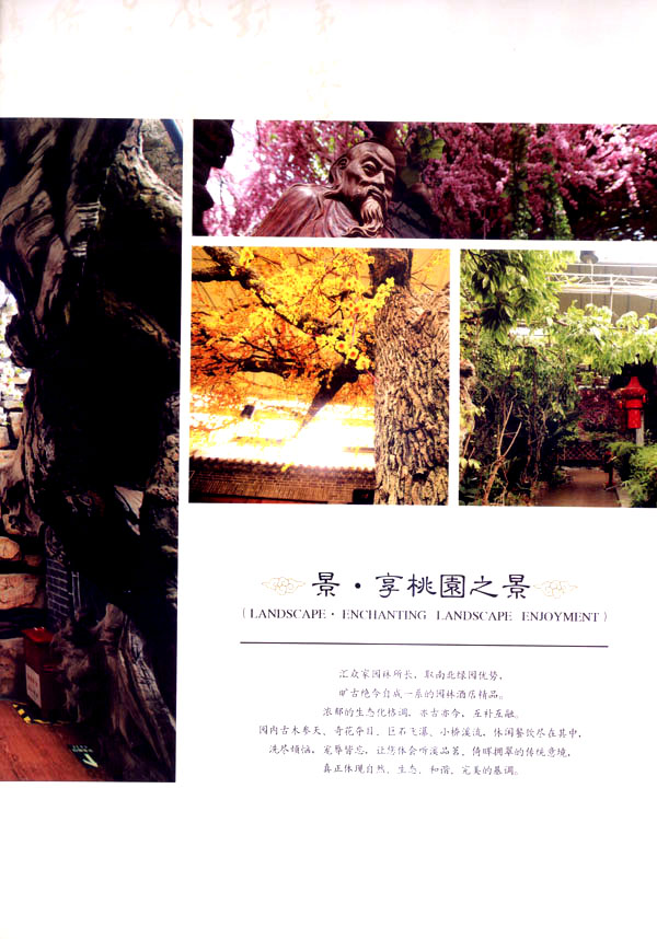 淹城花都溫泉水城孕育天地之精華,悅身、悅?cè)荨傂、悅神。置身其中泉水潺潺,霧氣繚繞、花瓣飄香,恍若仙境。“掬水月在手,弄花香滿衣”,花都溫泉的浪漫與溫潤在這里完美展現(xiàn)。 花都溫泉水城包括洗浴區(qū)、戲水世界、露天溫泉、自助餐廳、生態(tài)房、別墅區(qū)、紅文化房、VIP區(qū)等多種功能區(qū)域,是集溫泉養(yǎng)生、休閑住宿、演藝會務(wù)為—體的休閑度假勝地,給賓客帶來江南小鎮(zhèn)的浪漫水城之旅。 古木新枝畔賓客對酒當(dāng)歌,溪泉石椅旁把茶品啜。 淹城-三勤生態(tài)酒店,這里是一處綠色生態(tài)的美食家園。此地鬼斧神工.奇水異石,和風(fēng)細(xì)雨林中穿過,引百鳥朝來暮歌;這里集生態(tài)餐飲、演藝、中小型會務(wù)為一體,將現(xiàn)代裝飾風(fēng)格和古雅拙樸的自然裝修完美整合;這里聚集大江南北名廚,推出精致綠色美昧佳肴。來到這里,賓客可享田園至美之景,品舌尖至鮮之味,實(shí)乃人生一大樂事。