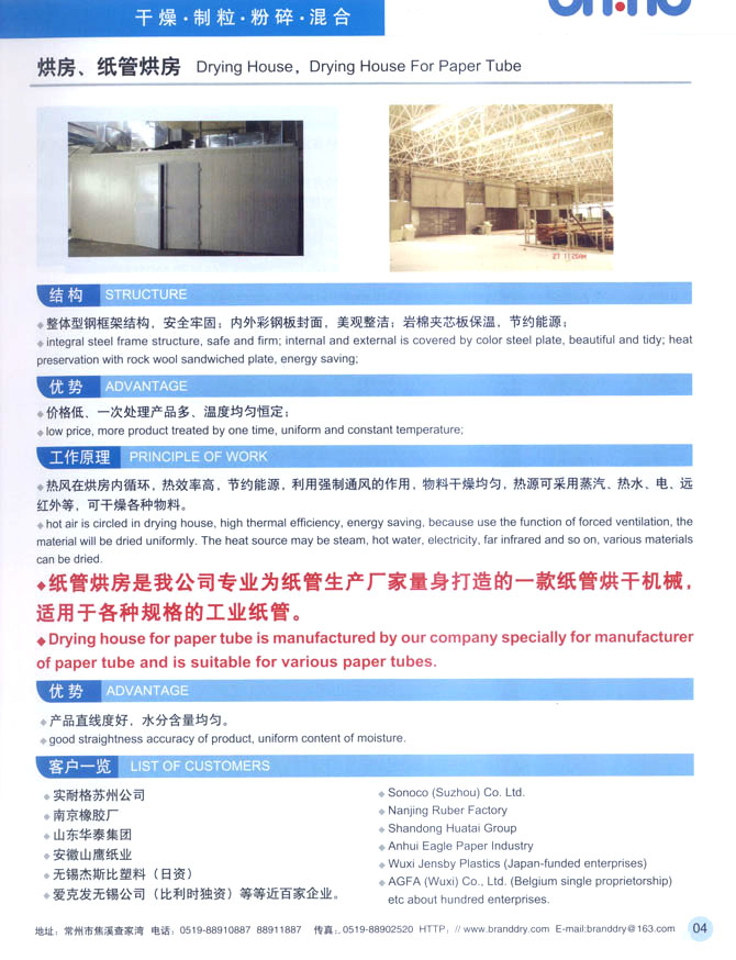 常州市博蘭特干燥設(shè)備有限公司是生產(chǎn)、銷售各類成套干燥設(shè)備的專業(yè)廠家,公司擁有現(xiàn)代化的標(biāo)準(zhǔn)廠房、先進(jìn)的試驗(yàn)裝備、以及雄厚的技術(shù)力量。擁有一流設(shè)計(jì)、研究人員,隨時(shí)為客戶提供技術(shù)服務(wù)。此外公司還擁有完整的營銷隊(duì)伍和售后服務(wù)體系,使公司在不斷壯大過程中贏得良好的聲譽(yù)。