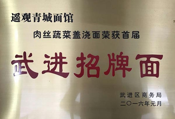 武進(jìn)區(qū)青城面館經(jīng)營(yíng)面積280平方米左右,主要特色是現(xiàn)炒肉絲,素菜蓋澆面,面館創(chuàng)始人今年63歲的王蘭珍,她對(duì)美食有著高于常人的悟性。她開過(guò)饅頭店,開過(guò)小飯館,承包過(guò)食堂,燒菜、取料樣樣在行,吃過(guò)的人常常贊不絕口。 20世紀(jì)初,在跟德興面館的老師傅學(xué)了做面手藝后,王蘭珍萌生了開一家面館的想法,除了可以養(yǎng)家糊口,最重要的是想讓更多人嘗嘗自己的手藝。于是,她在自己的住處擺起了幾張桌椅,面館就算正式營(yíng)業(yè)了。因?yàn)榧易∏喑菢颍跆m珍干脆取名“青城面館”。 “從早上5點(diǎn)多開始營(yíng)業(yè),到下午1點(diǎn)多打烊,一天至少要賣掉300多碗面,用掉近160斤面粉!睘楹吻喑敲骛^的面條如此受歡迎,兒媳婦陸偉紅說(shuō)秘訣在于湯頭和澆頭。湯頭分白湯和紅湯,白湯是由10斤豬骨頭熬制而成,湯色清澈而味道濃郁;紅湯以骨頭湯作底湯,加入茴香、甘草、草果等20多種中草藥,以及糖、醬油等調(diào)味品,鮮而不腥,散發(fā)出陣陣香味。 和一般面館事先燒制好澆頭,放在盆里供客人選擇不同,青城面館的澆頭都是一份份現(xiàn)炒的,特別講究食材的新鮮。就拿暢銷的肉絲蔬菜紅湯面來(lái)說(shuō),要先起猛火,把肉絲、木耳、蘑菇、青菜等食材放一起煸炒至香,然后澆在撈起的面條上。一碗面出來(lái),現(xiàn)炒的澆頭與面條融合,味道香郁至極。 遙觀人的早晨,醒得有些早。對(duì)很多遙觀人來(lái)說(shuō),美好的一天是從青城面館開始的。那一碗碗現(xiàn)炒的蓋澆面,筋道爽滑、醬香味濃,溫存著他們的胃與記憶,帶來(lái)刻進(jìn)骨子里的家鄉(xiāng)味道。