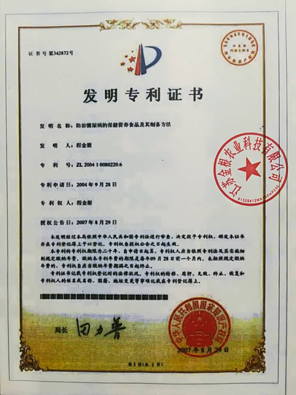 江蘇金根農(nóng)業(yè)科技有限公司是專業(yè)從事無(wú)糖食品、糖尿病、肥胖、和中老年人健康食品的研究、開發(fā)、銷售為一體的現(xiàn)代企業(yè)。 經(jīng)高級(jí)工程師程金根先生盡二十八年研發(fā),以五谷四豆為原料研制出一種特殊的營(yíng)養(yǎng)食品。本產(chǎn)品富含人體所需的有機(jī)微量元素:鉻、硒、鋅、鎂、鋰等,幾十種氨基酸、膳食纖維及其它營(yíng)養(yǎng)物質(zhì)。產(chǎn)品原料是按生態(tài)農(nóng)業(yè)有機(jī)的標(biāo)準(zhǔn)通過(guò)生物工程的種、培植方法,為谷糧增加了多種營(yíng)養(yǎng)成份,按科學(xué)配方生產(chǎn)出“老山仁”系列產(chǎn)品。 本產(chǎn)品原料是在高寒、高濕、旱地等種植,要求施農(nóng)家肥,采用生物治蟲,因此是無(wú)公害的優(yōu)良品種。目前公司有四個(gè)種植基地,分別在江西、江蘇、陜西等地。 一種防治糖尿病功能性食品專利號(hào):ZL99119217.6。 “程金根”系列產(chǎn)品先后獲得二項(xiàng)發(fā)明專利,并經(jīng)聯(lián)合國(guó)科技成果評(píng)估論證為A級(jí)產(chǎn)品,屬世界領(lǐng)先技術(shù)。在韓國(guó)、美國(guó)、香港、德國(guó)分別榮獲新技術(shù)、新產(chǎn)品博覽會(huì)金獎(jiǎng)。 2006年經(jīng)國(guó)家農(nóng)業(yè)部、發(fā)展改革委員會(huì)、聯(lián)合國(guó)糧農(nóng)組織代表、中醫(yī)研究院、中國(guó)科學(xué)技術(shù)協(xié)會(huì)、中醫(yī)藥大學(xué)、農(nóng)業(yè)大學(xué)、農(nóng)學(xué)院、中國(guó)保健協(xié)會(huì)、糧油協(xié)會(huì)、食品研究所等十幾位專家對(duì)該專利產(chǎn)品做了評(píng)估論證,一致認(rèn)為該項(xiàng)技術(shù)先進(jìn)產(chǎn)品突出、食用安全,并給予很高的評(píng)價(jià)。 論證意見: 1、這項(xiàng)專利技術(shù)填補(bǔ)了國(guó)內(nèi)糖尿病特種功效食品的專用品種和栽培技術(shù)空白。 2、采用有機(jī)食品技術(shù),并以有機(jī)農(nóng)產(chǎn)品為原料加工特種營(yíng)養(yǎng)食品,提高了產(chǎn)品的安全性。 3、用鉻、硒、鋅、鎂、鋰生物強(qiáng)化栽培技術(shù)已獲得發(fā)明專利,為國(guó)際先進(jìn)水平。 4、經(jīng)過(guò)10多年的應(yīng)用實(shí)踐,進(jìn)一步證明了通過(guò)飲食調(diào)理,可預(yù)防糖尿病,對(duì)已患糖尿病者有緩解和預(yù)防糖尿病綜合癥的功效。 “程金根”系列產(chǎn)品具有低脂肪、低熱量、高蛋白、富含各種微量元素(鉻、硒、鋅、鎂、鋰)、高膳食纖維、具有抗氧化、增加免疫力等特點(diǎn),經(jīng)常食用有利于膳食營(yíng)養(yǎng)平衡,是糖尿病、肥胖和中老年人、亞健康群體最佳的健康食品。