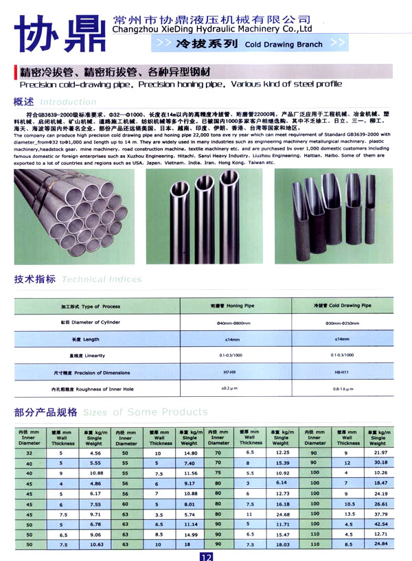 主要生產(chǎn)經(jīng)營(yíng):精密冷拔鋼管,珩磨鋼管,精密活塞桿,液壓油缸、氣缸設(shè)計(jì)制造.高精密液壓冷拔機(jī)、液壓矯直機(jī)、珩磨機(jī)、掏料機(jī)設(shè)計(jì)制造。公司設(shè)有專業(yè)的生產(chǎn)工廠,有多年從事液壓工程研究設(shè)計(jì)的專家及有豐富實(shí)踐經(jīng)驗(yàn)的工程技術(shù)人員,有專用的生產(chǎn)設(shè)備,先進(jìn)的生產(chǎn)工藝,以及完善的質(zhì)量保證體系,以確保產(chǎn)品的質(zhì)量,用最佳的售后服務(wù)為客戶增值。