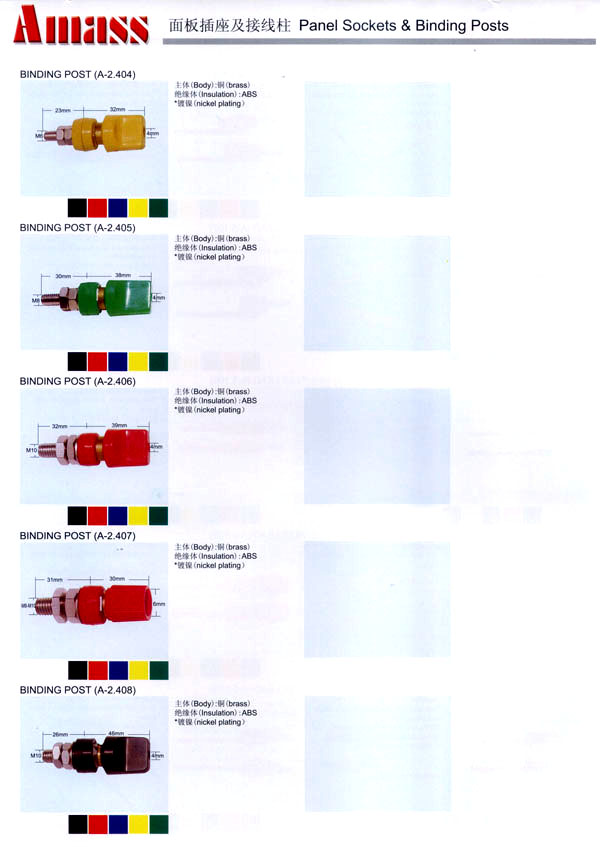 本公司專業(yè)生產(chǎn)各類香蕉插頭,香蕉插座,接線柱,電瓶夾,鱷魚夾,測試導(dǎo)線,測試筆等。產(chǎn)品分2mm/2.5mm/3mm/3.5mm/4mm五大系列,百余種款式, 各種香蕉插廣泛用于儀器、儀表、電力測試、教學(xué)、玩具,視聽設(shè)備、醫(yī)療儀器,保健產(chǎn)品等領(lǐng)域。公司技術(shù)力量雄厚,生產(chǎn)工藝先進,產(chǎn)品遠銷港、臺、歐美,并與飛利浦等國際品牌配套。公司本著精益求精的理念,歡迎新老客戶光臨。 我們擁有資深的工程師和豐富的電子產(chǎn)品銷售經(jīng)驗,專業(yè)生產(chǎn)各類電子接插件產(chǎn)品。 香蕉插頭,香蕉插座,電瓶夾,鱷魚夾等品種齊全、 質(zhì)量可靠,致力服務(wù)于通訊、數(shù)據(jù)通信、消費類電子產(chǎn)品、計算機和計算機外圍設(shè)備以及工業(yè)應(yīng)用等領(lǐng)域,能給客戶提供全面采購解決方案。 我們秉承穩(wěn)健作風(fēng)、誠實經(jīng)營、合理價格、完善服務(wù)的宗旨,在全體客戶的支持下,公司不斷創(chuàng)新進取,業(yè)績蒸蒸日上,已與數(shù)十家電子零件制造商及其分支機構(gòu)建立密切合作關(guān)系,在國內(nèi)擁有數(shù)百家固定客戶。