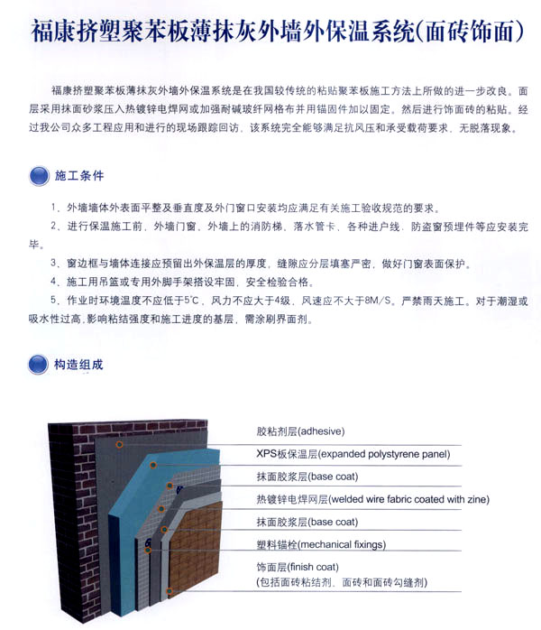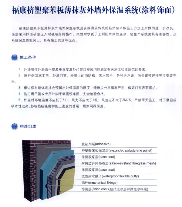 常州市?敌滦徒ú挠邢薰臼且匝兄崎_發(fā)、生產、銷售、施工、技術服務為一體的化學建筑材料的專業(yè)企業(yè),通過與歐洲著 名建筑材料公司和國內權威科研機構合作,并聘請國家級專家為技術顧問,開發(fā)出適合我國市場的福康EPS、XPS及聚苯顆粒外墻外保溫節(jié)能系統(tǒng)。 公司的生產線全部采用國內先進的電腦控制自動化設備,配備了專業(yè)的實驗中心,并且采用進口的可再分散乳膠粉為基料,確保福康外墻外保溫節(jié)能系統(tǒng)具有性能優(yōu)異、安全可靠,綠色環(huán)保、適用性強的高品質特點。 公司開發(fā)的\'?低鈮ν獗叵到y(tǒng)\'被列為江蘇省科技成果推廣項目。整個生產流程依照質量體系的要求,實行嚴格的監(jiān)控和檢測,為生產優(yōu)質產品提供保證。高品質的福康外墻外保溫系統(tǒng),提供從熱工設計、產品開發(fā)、生產銷售及工程施工全程服務的一體化解決方案。 公司本著“綠色環(huán)保、節(jié)約能源、造福人類”的理念。用我們一流的產品和優(yōu)秀的服務,打造出一個個節(jié)能康居示范工程,為人類營造出舒適健康的居住環(huán)境。我們愿為中國節(jié)能事業(yè)的發(fā)展積極努力,更上一層樓。 公司組建高效的生產經營管理模式,設立專業(yè)技術服務機構。配備售后的優(yōu)質服務。實行原材料、運輸、安裝一條龍服務。經本公司施工之后,貴公司可以直接批涂料、裝門窗、貼瓷磚,保證絕無任何質量問題。