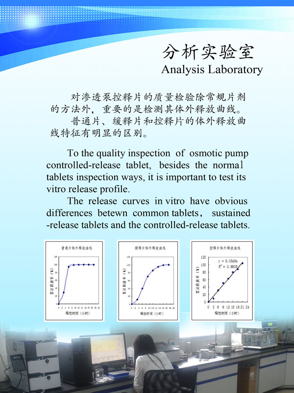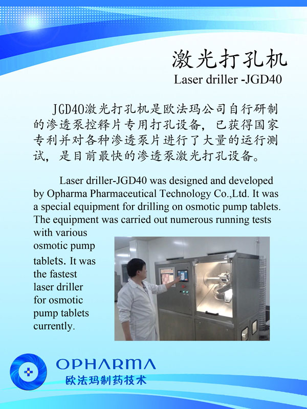 公司始建以來,以前瞻的科學(xué)規(guī)劃,通過自主研發(fā),解決了高速激光打孔機諸多的世界難題,使之達到40片/秒以上且精確打孔的國際領(lǐng)先水平;同時開發(fā)廢片自動識別、剔除功能,以滿足客戶的實際所需。公司與瑞士等國家研究機構(gòu)的科技合作,以高速激光打孔機為基礎(chǔ),建設(shè)了滲透泵制劑研發(fā)和中試生產(chǎn)車間,開發(fā)了多種藥物的滲透泵制劑,形成了從關(guān)鍵設(shè)備研制,新制劑開發(fā)、工藝配套,到批量生產(chǎn)測試的滲透泵制劑開發(fā)全過程技術(shù)團隊和研究設(shè)施。公司瞄準(zhǔn)現(xiàn)代新型釋藥系統(tǒng),吸收國內(nèi)外高端人才,努力開拓控緩釋技術(shù)、靶向給藥技術(shù)及智能給藥技術(shù)。