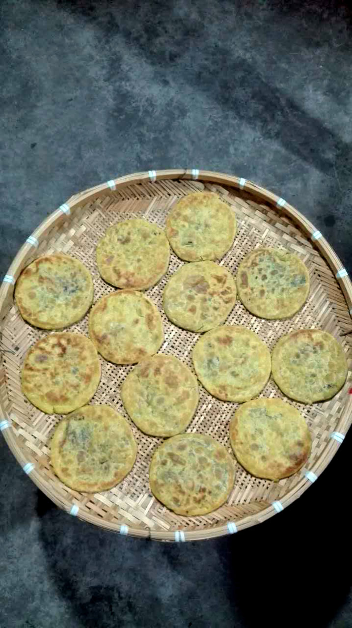 油酥餅(圖3-4)、糍團(tuán)餅(圖5-6)、韭菜餅(圖7-8)   油酥餅每天晚上做,涼了更好吃,更酥更脆,里面都是很香的黑芝麻;糍團(tuán)餅,每天中午擺攤熱了煎鍋開始煎,糯米做成,用菜籽油煎至金黃,餡兒是黑芝麻瓜子仁;韭菜餅是最受歡迎的,每天都有好多人排隊(duì)來買。供應(yīng)時(shí)間:每年的4月份到11月份 下午1點(diǎn)到5點(diǎn)半。