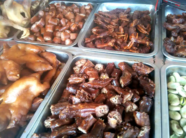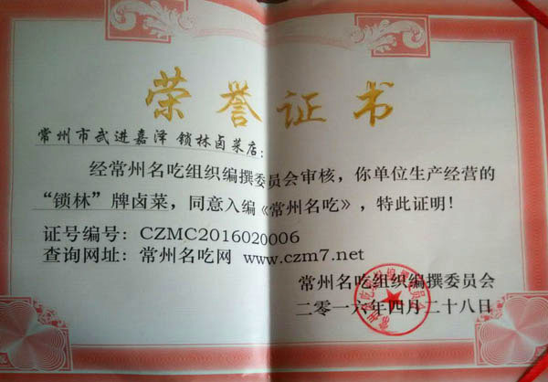 武進(jìn)區(qū)嘉澤老街十字路口,有一家不起眼的鹵菜專賣店,店面雖然不大,但一年365天每天來購買鹵菜的消費(fèi)者卻絡(luò)繹不絕。 這家鹵菜店名叫鎖林鹵菜店,店主名叫萬鎖林。 今年已花甲之年的萬鎖林,出生在武進(jìn)區(qū)的一個(gè)鹵菜世家。解放前,正逢亂世,1927年其父萬友良17歲隨父從蘇北海安至夏溪鎮(zhèn)落戶,全家以經(jīng)營小吃、鹵菜為生。1956年萬友良經(jīng)營的鹵菜小吃店公私合營,起名為東方飯店(后改名為夏溪飯店),萬友良帶領(lǐng)其七個(gè)兒子全部從事餐飲事業(yè)。1972年,排行第六的萬鎖林初中畢業(yè)被分配到嘉澤飯店工作,直至1982年夫妻倆著手創(chuàng)辦鎖林鹵菜館,專業(yè)從事鹵菜的加工和銷售。 鎖林鹵菜采用祖?zhèn)髋浞,制作工藝?jīng)清洗—汆水—再清洗—油汆—加料—燒制—包裝等多道工序。萬鎖林在祖?zhèn)髅胤降幕A(chǔ)上,不斷探索創(chuàng)新,使鹵菜口味更加香醇可口。他還在菜肴中加入茴香、陳皮、桂皮等20多種中草藥,使產(chǎn)品兼具食用保健作用。 由于鎖林鹵菜色、香、味俱佳,而且價(jià)格合理,遠(yuǎn)近數(shù)十里群眾紛紛前來選購目前,該店已形成鴨頭、雞爪、豬頭肉、五香牛肉等四大系列,產(chǎn)品遠(yuǎn)銷北京、上海、浙江、海南及蘇、錫、常各地,深受各地消費(fèi)者青睞。 購買地址: 一、嘉澤鎮(zhèn)菜市場(chǎng)內(nèi) 二、嘉澤鎮(zhèn)老街十字路口 電話:0519-83802086 訂購熱線:18915002160