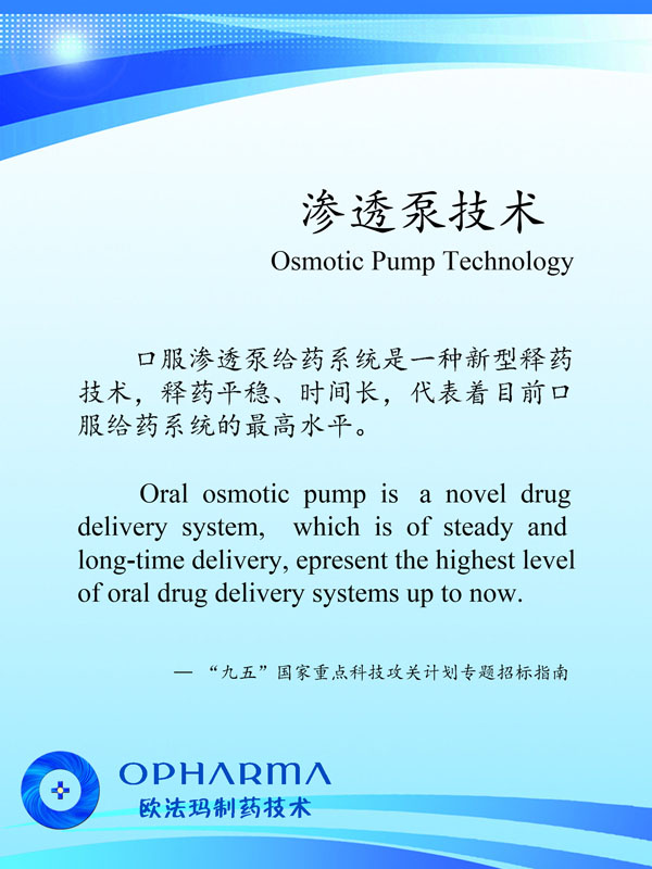 常州歐法瑪制藥技術(shù)有限公司位于長江三角洲黃金腹地——常州。地理位置優(yōu)越、交通便捷,由鐵路、公路、水路、民航形成了一張立體交叉的交通網(wǎng)絡(luò)。 公司創(chuàng)建于2013年,是一家集研發(fā)、生產(chǎn)和銷售為一體,專業(yè)從事高速激光打孔機、滲透泵制劑研發(fā)、生產(chǎn)和銷售。目前公司擁有員工20人,科技研發(fā)和技術(shù)人員占員工總數(shù)80%以上,其中本科以上學(xué)歷占80%以上。 公司始建以來,以前瞻的科學(xué)規(guī)劃,通過自主研發(fā),解決了高速激光打孔機諸多的世界難題,使之達(dá)到40片/秒以上且精確打孔的國際領(lǐng)先水平;同時開發(fā)廢片自動識別、剔除功能,以滿足客戶的實際所需。公司與瑞士等國家研究機構(gòu)的科技合作,以高速激光打孔機為基礎(chǔ),建設(shè)了滲透泵制劑研發(fā)和中試生產(chǎn)車間,開發(fā)了多種藥物的滲透泵制劑,形成了從關(guān)鍵設(shè)備研制,新制劑開發(fā)、工藝配套,到批量生產(chǎn)測試的滲透泵制劑開發(fā)全過程技術(shù)團隊和研究設(shè)施。公司瞄準(zhǔn)現(xiàn)代新型釋藥系統(tǒng),吸收國內(nèi)外高端人才,努力開拓控緩釋技術(shù)、靶向給藥技術(shù)及智能給藥技術(shù)。 2013年公司被評為黑馬大賽“創(chuàng)業(yè)組50強”、“領(lǐng)軍人才創(chuàng)業(yè)重點企業(yè)”;2014公司通過了IS09001-2008質(zhì)量管理體系認(rèn)證、CE認(rèn)證、江蘇省質(zhì)量信得過企業(yè)。