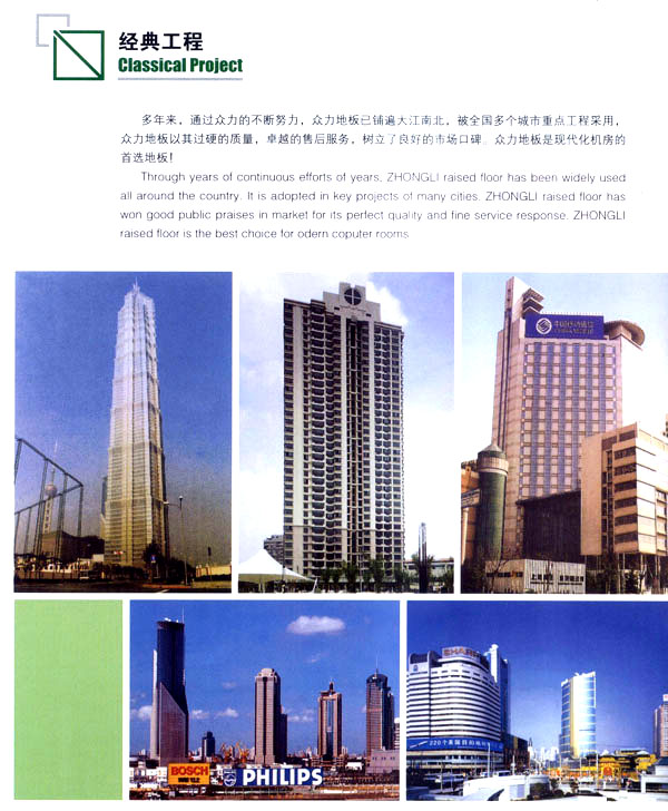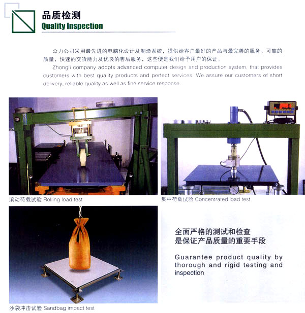 公司生產(chǎn)防靜電鋼質(zhì)、木質(zhì)機(jī)房地板和強(qiáng)化復(fù)合地板及各種電腦操作臺(tái)系列產(chǎn)品。該產(chǎn)品廣泛應(yīng)用于電子機(jī)房、通訊機(jī)房、各類實(shí)驗(yàn)室和管線鋪設(shè)集中的防靜電場(chǎng)所以及家庭、大型商場(chǎng)的裝飾。公司技術(shù)力量雄厚、管理科學(xué),已具有設(shè)計(jì)、開(kāi)發(fā)、市場(chǎng)營(yíng)銷及售后服務(wù)的專業(yè)人才隊(duì)伍。