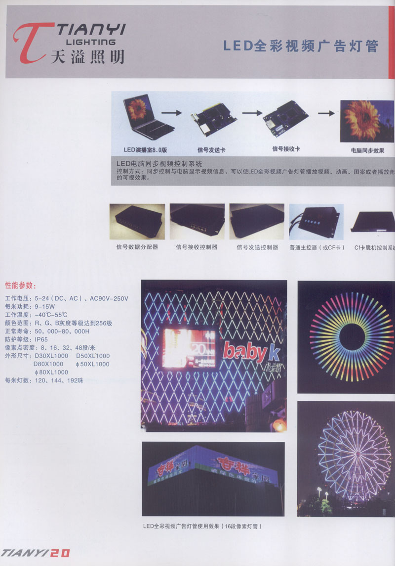天溢照明是中國領先的專業(yè)從事LED廣告照明裝飾燈具設計、系統(tǒng)開發(fā)、燈具制造、工程服務一體的專業(yè)型公司,本公司產(chǎn)品已廣泛應用于全國大多數(shù)城市夜景亮化景觀照明、酒店休閑娛樂夜場夢幻燈光、戶內(nèi)外廣告宣傳、建筑及室內(nèi)照明以及家居裝飾等場合。