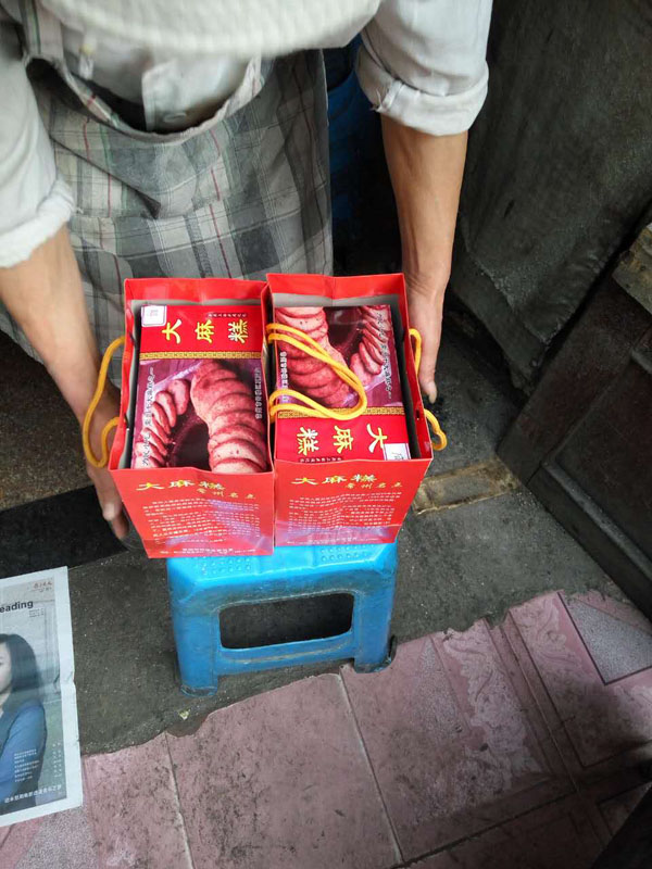 常州人夏亞寶的大麻糕技術(shù)是上世紀(jì)80年代更著新橋麻糕店的師傅周金生學(xué)的,1999年開店至今,在附近一帶做得小有名氣,向?qū)W校供應(yīng)麻糕,整整6年。 “做大麻糕太辛苦,半夜爬起來準(zhǔn)備熱爐子、和面、做餡,年輕人吃不了這苦,15年我都沒請人,和老婆一起打過來的!毕膩唽氈钢直凵系臓C傷的痕跡說,能堅(jiān)持烤桶制作大麻糕的真心不多了。夏亞寶的烤桶是自制的,爐心常州買不到,他托人從無錫買來,15年前85元一個(gè),前年漲到150元!翱就暗臓t心其實(shí)就是以前船上人家用的行爐”,去底后鑿個(gè)洞,然后外面加上隔熱材料,最后貼上鐵片”。 15年,這已經(jīng)是第三只貼桶了。