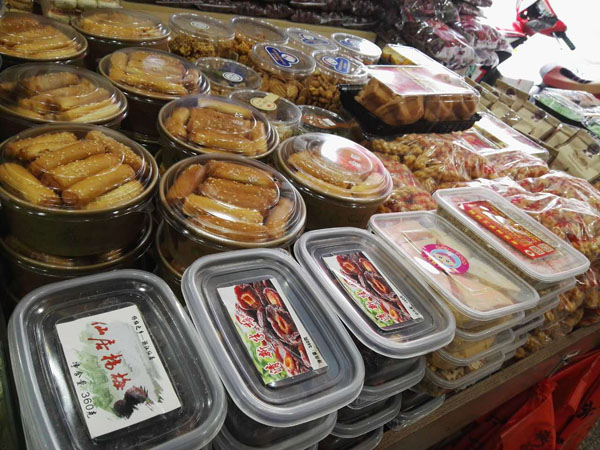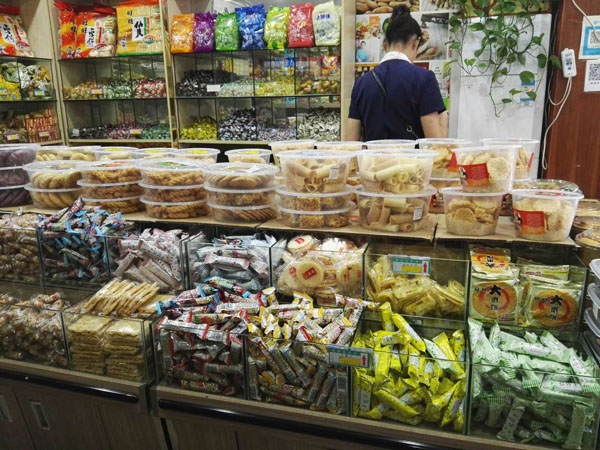 湖塘花東街上的“石頭炒貨店”是20多年的老字號(hào)了。上個(gè)世紀(jì)90年代,二十郎當(dāng)歲的“石頭”一一石愛軍從徐州來到武進(jìn),就在這條街上擺了個(gè)炒貨攤!皫灼椒矫椎男〉?cái)偅吷霞軅(gè)大鐵鍋,炒出的瓜子、花生、蠶豆,鋪在竹篾上篩過、冷卻后就可以賣了!笔瘣圮娀貞洠址秽徖锩爸盏膰(yán)寒,擠在地?cái)偳皣L著剛出鍋的瓜子的場(chǎng)景,還歷歷在目。20多年過去了,鄰居們都成了最熟悉的親人,從年輕姑娘到抱著孫子的老人,大家還是最愛吃石頭炒的瓜子。而炒貨店的店面也擴(kuò)大了,并且在湖塘另開了多家分店。 生意最好的還是花東街上的老店。不大的店面,被一袋袋瓜子、花生、蠶豆、核桃堆得滿滿的,空氣里也滿滿都是堅(jiān)果的香氣。超大瓜子唇齒留香,去皮瓜子鮮香入昧,南瓜子皮薄肉厚,還有開心果、手剝松子、小油果、核桃、碧根果、小黃豆,以及炒米糕、蛋卷、麻松條、紫薯干、地瓜干、山芋片、鍋巴、芝麻糖、山楂、麻花、葡萄干….這么多美昧都是老板親手制作。愛吃點(diǎn)什么,就用一 長(zhǎng)柄勺鏟點(diǎn)兒什么,最質(zhì)樸簡(jiǎn)單的包裝袋里,裝著的是屬于這條老街居民記憶里的味道,穿過幾十年的時(shí)光,仍然鮮活生動(dòng)地銘刻在每一個(gè)人的里。 “少東家”石榮沖就是在這個(gè)老店、這條老街長(zhǎng)大的。他說目前自己炒瓜子的技藝還沒到火候,還在跟著父親學(xué)習(xí)的階段。”挑選原料、炒制工序,每一步都有學(xué)問在里頭!蹦玫陜(nèi)的銷售冠軍“內(nèi)蒙大瓜子”來說,這種來自內(nèi)蒙、經(jīng)過充足日照的葵花子每顆長(zhǎng)度近2厘米,個(gè)頭特別大,也十分飽滿。拈一顆大瓜子,就連嗑起來的聲音也分外清脆。外皮很容易與內(nèi)仁剝離,碩大的瓜子仁口感十分香脆,與別家作料用得很足、吃起來特別鮮咸的瓜子不同,這種大瓜子更注重烘托原昧,淡淡的咸昧在舌尖掠過,剩余的都是屬于瓜子的天然香甜。
