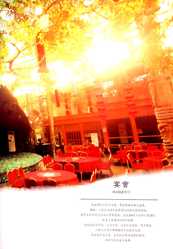 淹城花都溫泉水城孕育天地之精華,悅身、悅容、悅心、悅神。置身其中泉水潺潺,霧氣繚繞、花瓣飄香,恍若仙境!稗渌略谑郑ㄏ銤M衣”,花都溫泉的浪漫與溫潤在這里完美展現。 花都溫泉水城包括洗浴區(qū)、戲水世界、露天溫泉、自助餐廳、生態(tài)房、別墅區(qū)、紅文化房、VIP區(qū)等多種功能區(qū)域,是集溫泉養(yǎng)生、休閑住宿、演藝會務為—體的休閑度假勝地,給賓客帶來江南小鎮(zhèn)的浪漫水城之旅。 古木新枝畔賓客對酒當歌,溪泉石椅旁把茶品啜。 淹城-三勤生態(tài)酒店,這里是一處綠色生態(tài)的美食家園。此地鬼斧神工.奇水異石,和風細雨林中穿過,引百鳥朝來暮歌;這里集生態(tài)餐飲、演藝、中小型會務為一體,將現代裝飾風格和古雅拙樸的自然裝修完美整合;這里聚集大江南北名廚,推出精致綠色美昧佳肴。來到這里,賓客可享田園至美之景,品舌尖至鮮之味,實乃人生一大樂事。