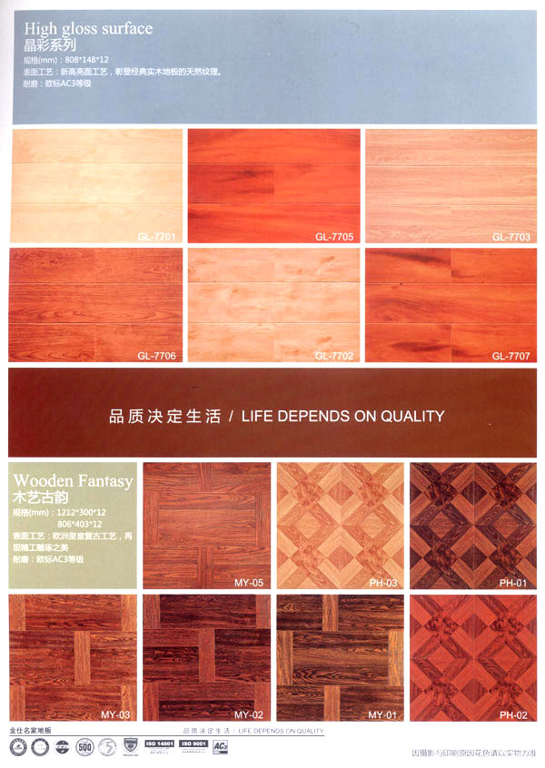 公司堅持“以人為本”,吸引一大批怖技術(shù),善管理,肯鉆研的高素質(zhì)人才。公司現(xiàn)有60多名企業(yè)管理人才,建立了一個2000多人的品牌凹隊,公司先后通過了“ISO900l質(zhì)艟管理體系認(rèn)證”《全國工業(yè)產(chǎn)品生產(chǎn)許可證》,  《環(huán)境管理體系認(rèn)證》,  《中國環(huán)境標(biāo)志產(chǎn)品認(rèn)證》,《江蘇省知名企業(yè)彩牌》……,公刮實施以“金仕名家”為品牌戰(zhàn)略,取得了豐碩成果,目前擁有近干種花色供客戶挑選,立足閏內(nèi)走向世界,歐港昌盛秉承“精益求精,向產(chǎn)品零缺陷邁進(jìn)”的企業(yè)宗旨。以打造健埭,環(huán)保,綠色的行業(yè)精神,以卓越的品質(zhì)與海內(nèi)外新老客戶締造一個綠色,溫群的家園,熱忱歡迎海內(nèi)外朋友米我公司考察。