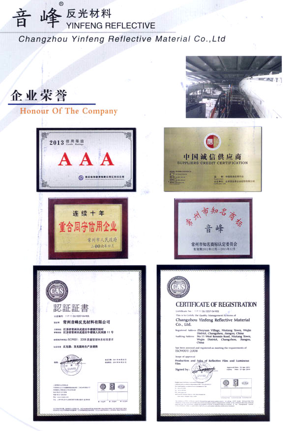 音峰集團是一個多種經(jīng)營的綜合性高科技股份公司,從事反光材料、交通安全設(shè)施、絲網(wǎng)印刷、揚聲器、紡織等產(chǎn)品的研制開發(fā)、生產(chǎn)銷售。公司自創(chuàng)立以來,堅持走科技發(fā)展的道路,以滿足客戶需求為公司宗旨,取得了令人矚目的經(jīng)濟效益和社會效益,使公司規(guī)模不斷擴大。 音峰反光材料有限公司是音峰集團下的一個新銳的子公司,主要從事系列反光材料及發(fā)光膜的研制和開發(fā)。公司擁有國內(nèi)最先進的生活殘設(shè)備,最專業(yè)的研制、開發(fā)人員,公司還投入了大量的資金,年產(chǎn)值達1.5億。 公司主生產(chǎn):廣告級反光膜、工程級反光膜、車牌級反光膜、高強級反光膜、廣告級反光雙色條、發(fā)光膜、噴繪反光膜、晶彩格、電信電力反光膜,鍍鋁膜等等..........根據(jù)國家指令法規(guī):反光材料的領(lǐng)域,如公路標志、標牌、標線、礦山、鐵路等......... 反光膜廣泛應(yīng)用于各種廣告標志牌,公路鐵路的導(dǎo)向牌、指示牌、地名牌、車牌,道路交通標志,物業(yè)小區(qū)標志,臨時施工標志,廣告宣傳、安全防護、高等級公路的各種警示標語,標識牌等。 公司堅持以生產(chǎn)力標準衡量企業(yè)效益和員工業(yè)績,堅持“以人為本,提倡知人、容人、用人、培養(yǎng)人,使企業(yè)具有極強的凝聚力,在激勵的市場競爭中保持旺盛的生命力!笨萍急WC品質(zhì),服務(wù)完善產(chǎn)品“是我們永遠不變的信念。 隨著世界的發(fā)展,企業(yè)經(jīng)營進入了全球化時代,本著這一共識,企業(yè)憑借自身的技術(shù)優(yōu)勢,積極參加國際間合作與競爭,努力拓展國內(nèi)與國際市場,公司愿與國內(nèi)外各界朋友在更廣泛的領(lǐng)域攜手合作,共同發(fā)展,共創(chuàng)繁榮。