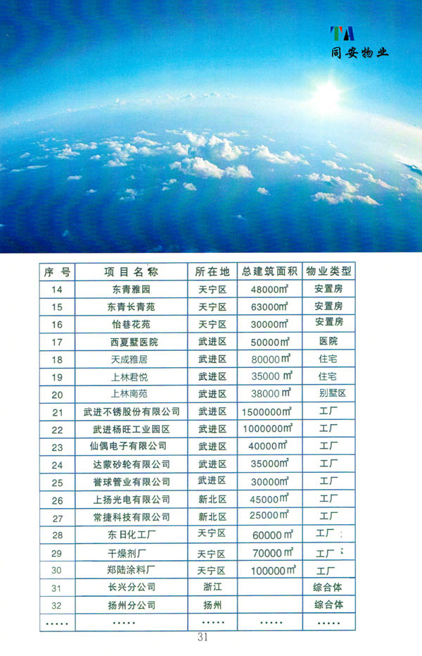 常州市同安物業(yè)管理有限公司注冊1999年,發(fā)展至今已有多年歷史,本公司坐落于美麗的龍城常州,秉承“融聚無限未來”的核心理念,融專業(yè)認(rèn)才,匯優(yōu)質(zhì)資源以”專心,細(xì)心,耐心”的服務(wù)態(tài)度,為客戶打造“安心,順心,稱心”的服務(wù)感受。 公司始終以“打造中國最值得信賴和最值得尊重的物業(yè)管理服務(wù)集成商”為愿景自我鞭策,不斷前行。同安物業(yè)以客戶滿意為終極目標(biāo),不斷加強(qiáng)”崗位資格認(rèn)證能力,人才招聘與職業(yè)化培訓(xùn)能力,產(chǎn)品策劃與管理設(shè)計能力,品質(zhì)監(jiān)督與管控能力,技術(shù)更新與運(yùn)營優(yōu)化力“五大專業(yè)能力的培養(yǎng)和提升,實現(xiàn)“精品化管理,專業(yè)化服務(wù)”。 公司發(fā)展至今,員工總數(shù)近千余人,大專以上學(xué)歷200多人,中高級技術(shù)人員160人,維修人員140人,物業(yè)管理師80名,公司接管面積達(dá)3100000多平方米,設(shè)涉及住宅小區(qū),別墅,大型游樂場,公園,醫(yī)院,廠區(qū),商業(yè)等。公司的工作管理逐步導(dǎo)入ISO9001質(zhì)量體系和ISO4001環(huán)境管理體系和GB/T28001職業(yè)健康安全管理體系,嚴(yán)格按照質(zhì)量體系的標(biāo)準(zhǔn)執(zhí)行。
