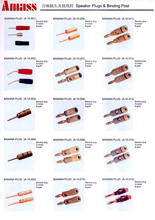 本公司專業(yè)生產(chǎn)各類香蕉插頭,香蕉插座,接線柱,電瓶夾,鱷魚夾,測試導(dǎo)線,測試筆等。產(chǎn)品分2mm/2.5mm/3mm/3.5mm/4mm五大系列,百余種款式, 各種香蕉插廣泛用于儀器、儀表、電力測試、教學(xué)、玩具,視聽設(shè)備、醫(yī)療儀器,保健產(chǎn)品等領(lǐng)域。公司技術(shù)力量雄厚,生產(chǎn)工藝先進(jìn),產(chǎn)品遠(yuǎn)銷港、臺(tái)、歐美,并與飛利浦等國際品牌配套。公司本著精益求精的理念,歡迎新老客戶光臨。