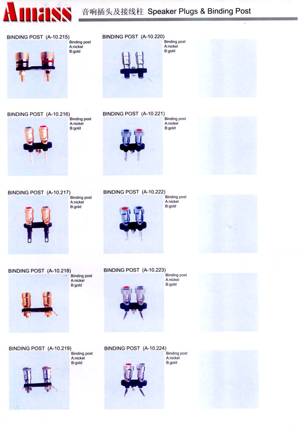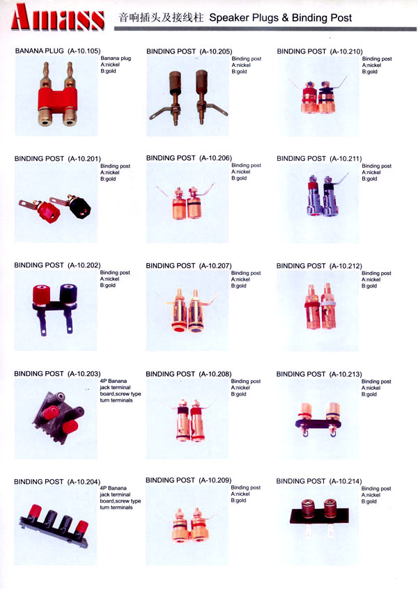 本公司專業(yè)生產(chǎn)各類香蕉插頭,香蕉插座,接線柱,電瓶夾,鱷魚夾,測(cè)試導(dǎo)線,測(cè)試筆等。產(chǎn)品分2mm/2.5mm/3mm/3.5mm/4mm五大系列,百余種款式, 各種香蕉插廣泛用于儀器、儀表、電力測(cè)試、教學(xué)、玩具,視聽(tīng)設(shè)備、醫(yī)療儀器,保健產(chǎn)品等領(lǐng)域。公司技術(shù)力量雄厚,生產(chǎn)工藝先進(jìn),產(chǎn)品遠(yuǎn)銷港、臺(tái)、歐美,并與飛利浦等國(guó)際品牌配套。公司本著精益求精的理念,歡迎新老客戶光臨。