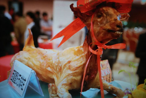 張萬成羊莊一家綜合性的公司,下設(shè)酒店,羊產(chǎn)品加工廠,屠宰廠,山羊養(yǎng)殖場(chǎng)。 酒店位于常州西夏墅浦河村,酒店羊宴規(guī)模占地30畝,酒店主要經(jīng)營(yíng)特色全羊宴。 一個(gè)祖?zhèn)鞯臍⒀虼髴,傳到張萬成,已是第六代了。張家的羊肉,素來以肉質(zhì)鮮美著稱,張萬成羊莊的主人張建龍是第六代傳人,張家的羊肉素來以肉質(zhì)鮮美著稱,從常州新北區(qū)沿黃河西路往機(jī)場(chǎng)方向直行至羅溪右轉(zhuǎn),穿過滬寧高速高架橋后不遠(yuǎn)處左拐沿翠屏湖路直走便能看到張萬成羊莊,酒店上下共有三層,2000多平方米經(jīng)營(yíng)面積,能同時(shí)接待近30桌客人的規(guī)模。有自己的羊圈和屠宰場(chǎng),每天殺20多只,菜式近100道。光是原料,就從原來羊身上的幾個(gè)主要部位,增加到除了羊牙齒以外的一只整羊全部可以入菜。烹制方式,更是在本土單一的燒、炒、煮基礎(chǔ)上,借鑒了東北、廣東、四川等地的烹羊特色,增加了蒸、涮、烤、煎、炸等多種方式。 注重原汁原味的冷菜 白切羊肉:精選羊頸部的活肉精制而成,肥瘦適中,絲毫沒有一般羊肉的膻味,沾少許張萬成羊莊秘制的醬料,口感非常好。 美味羊舌:張家的羊舌感覺是用特殊的醬料腌制過的,咸中略有甜味,口感鮮嫩卻肥而不膩,味道很香。 除了白切羊肉和羊舌以外還有許多冷菜品種,如羊肚、羊心、羊耳朵等。。 火候控制精準(zhǔn)的炒菜 炒羊肝:地道的農(nóng)家風(fēng)味,與大蒜葉同炒,蒜香濃郁,羊肝鮮嫩,這羊肝可是火候菜,羊肝鮮嫩與否不但取決于廚師對(duì)火候的掌握,還在于上桌放置時(shí)間的長(zhǎng)短,所以羊肝上桌后要盡快食用,看羊肝是否鮮嫩,只需用筷子挑起并輕輕抖動(dòng),有彈性者為佳。 美味羊?qū)殻阂跃曼S、鮑味菇爆炒的羊?qū),說是滋補(bǔ)壯陽(yáng)的一道金貴菜,配料講究的燒菜系列 宮廷燴羊肚:較為金貴的菜品,配菜貴于主料,是以名貴的素鮑和新鮮的筍絲與羊肚同煮,口感濃郁,營(yíng)養(yǎng)豐富。 海參白燒羊肉:將取自7個(gè)月大羔羊身上的帶皮腿肉與海參一同煨煮,菜肴美容滋補(bǔ),兩種鮮味互相補(bǔ)益達(dá)到完美交融狀態(tài),口感甚佳。 魚羊鮮:新鮮的青魚配上羊肉,既有本地羊肉的肥嫩,又有魚肉的鮮香,鮮!鮮!古代人造字就是有道理!”店里可以根據(jù)客人的需要配以魚回魚、鯰魚、鱖魚等。 特色的羊宴點(diǎn)心 羊肉餛飩:羊莊老板自創(chuàng)的羊宴點(diǎn)心,看似普通的油燜跑蛋卻另有乾坤,將蛋掀開便能看見藏于其中的羊肉菜餡餛飩,菜和肉都是自家新鮮的原料,很好吃。 手工搟面:不知道是因?yàn)槊媸钦嬲檬止{制還是因?yàn)榧尤肓缩r味十足的羊湯,總之味道非常好,面勁道,湯也鮮美! 張萬成羊莊的羊湯也是遠(yuǎn)近聞名,因?yàn)槭亲鎮(zhèn)鞯氖炙,做出來的羊湯不腥不膻,香醇不膩,味道十分鮮美,加入粉絲或者面條更是難得的美味。